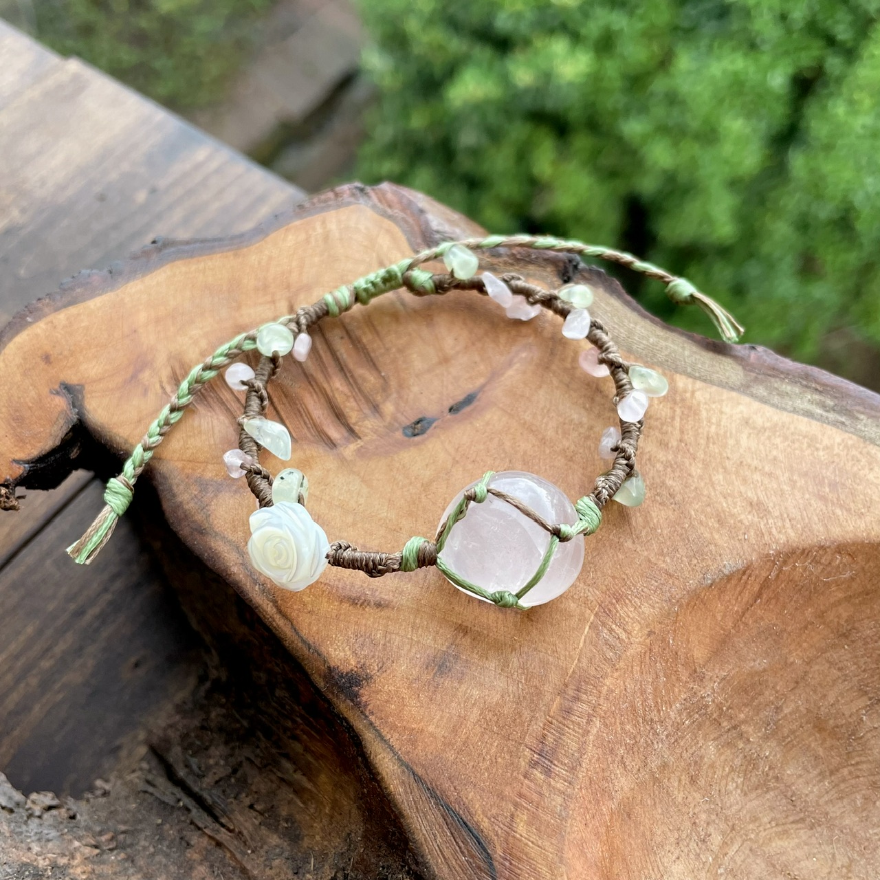 دستبند سنگ رزکوارتز، پرهنیت و صدف ۰۱