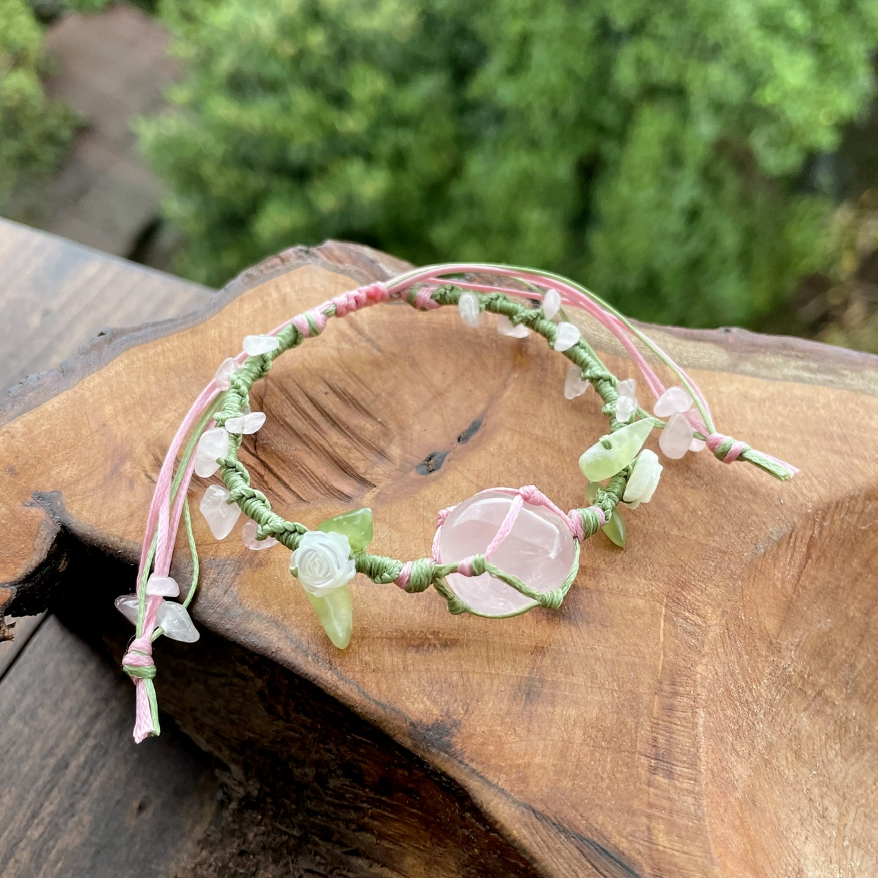 دستبند سنگ رزکوارتز، سرپانتین و صدف