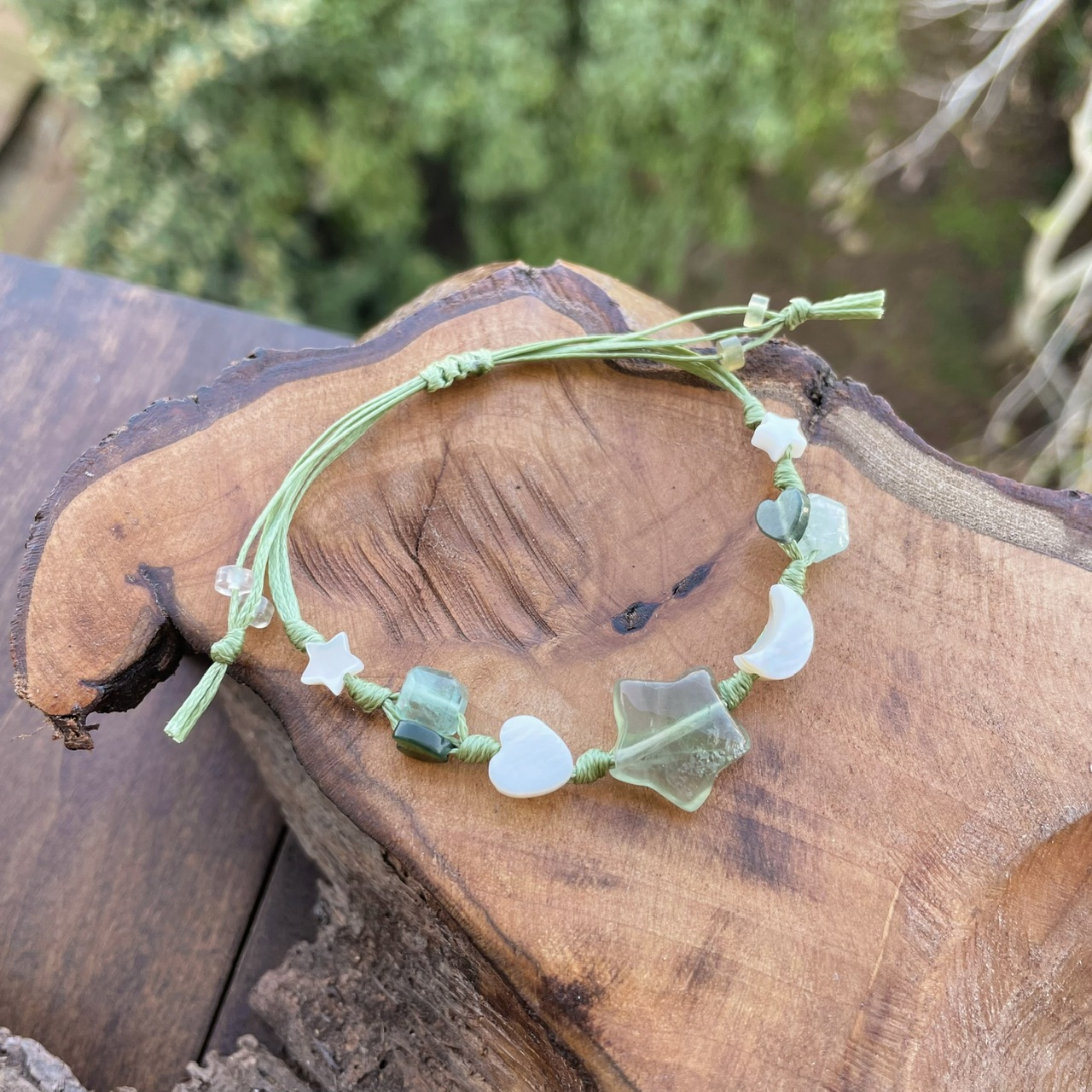دستبند سنگ فلوریت، عقیق خزه‌ای و صدف
